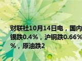 ,国内期货夜盘开盘涨跌不一,沪金涨0 11%,沪银跌0 4%,沪铜跌0 66%,沪锌跌1 75%,螺纹涨0 2%,铁矿涨0 57%,原油跌2 36%。浏览全文>>