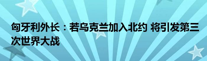 匈牙利外长:若乌克兰加入北约 将引发第三次世界大战